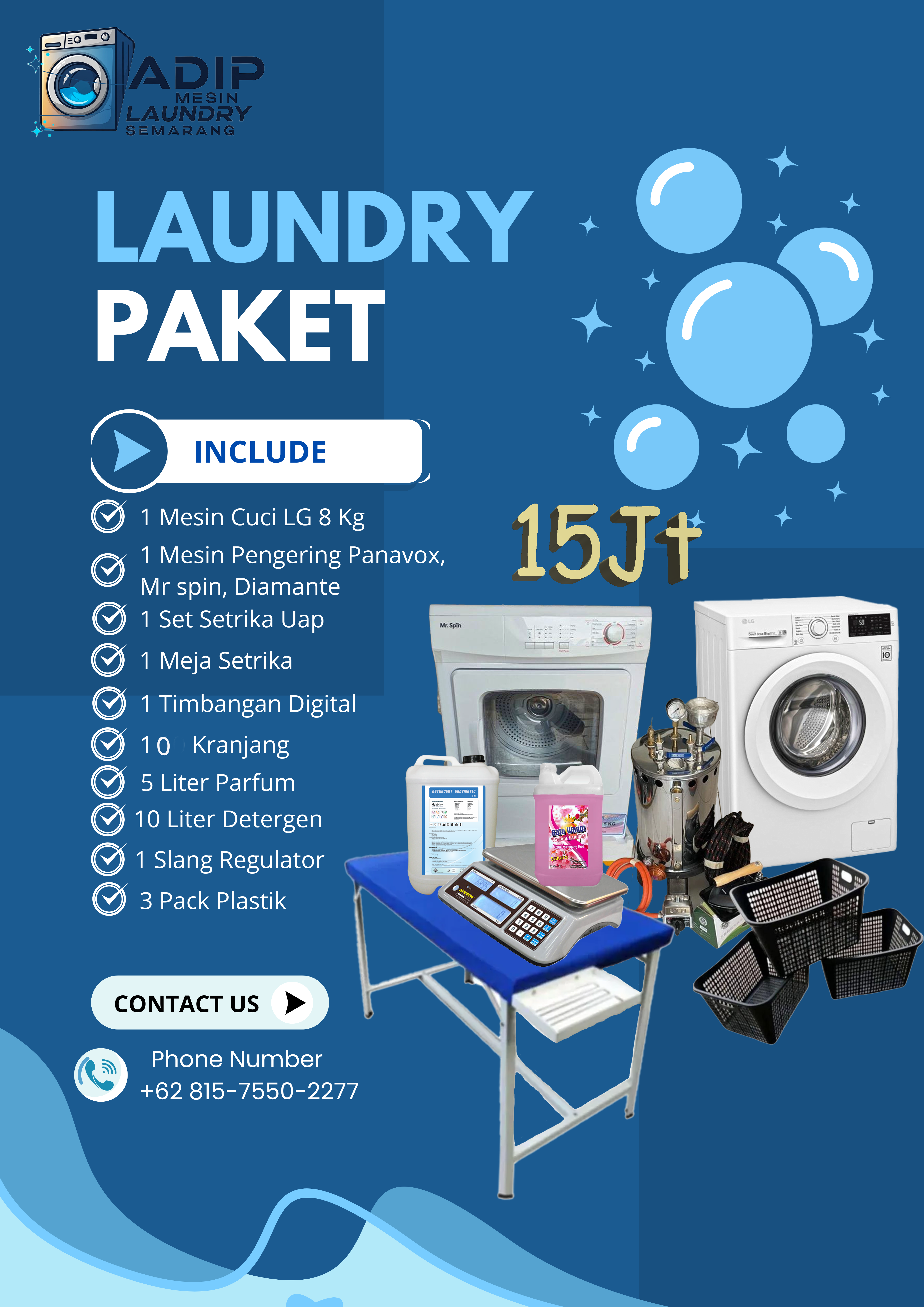 Segera ambil kesempatan emas ini untuk memulai bisnis laundry Anda dengan harga yang lebih terjangkau.